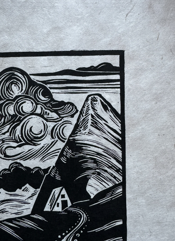 Prints are individually inked and pressed using archival, oil-based inks on beautifully textured Lokta paper. Lokta is a sustainable paper, handmade in Nepal with gorgeous flecks of fiber and texture. Each print is pressed by Adrift Prints with unique variations from print to print, perfectly original.